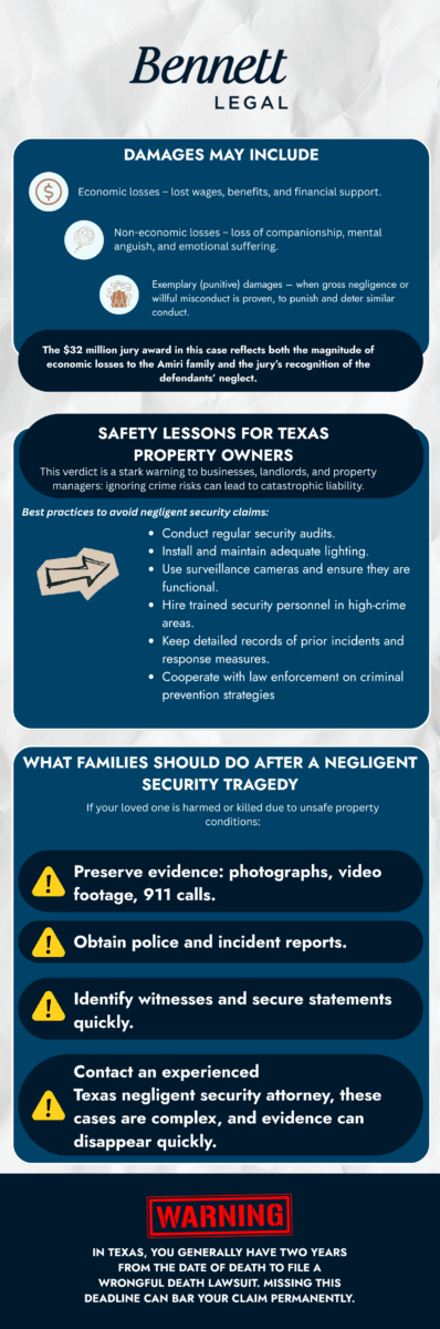 On October 13, 2025, a Dallas County jury returned a $32 million verdict in a negligent security wrongful death case, sending a strong message to businesses that disregard safety in high-crime areas.